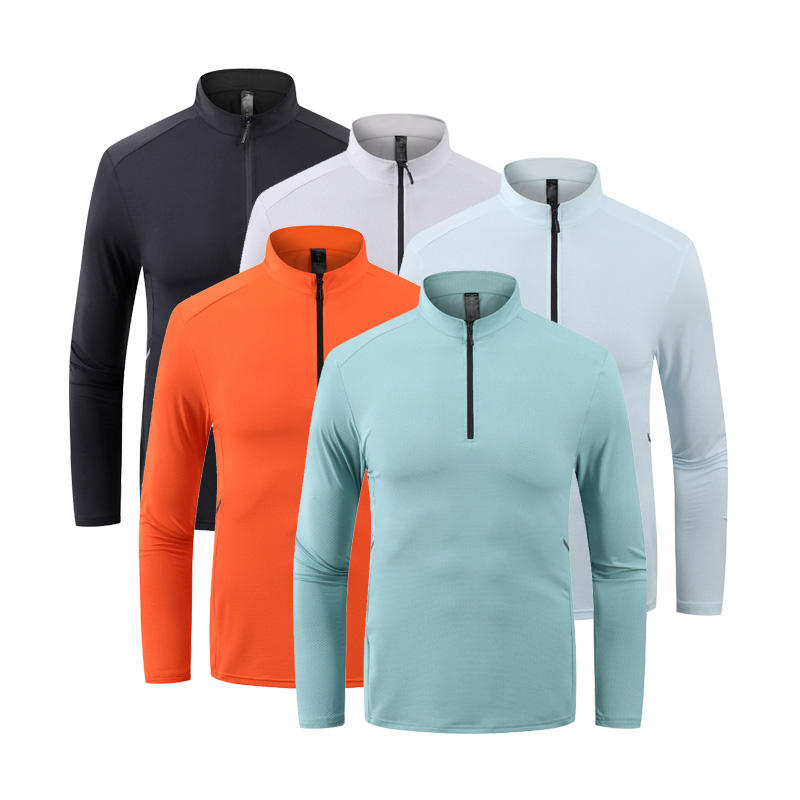 Top séchage rapide course pull hommes à manches longues chemises de Compression Gym Fitness Sport cyclisme fermeture éclair hommes respirant T-shirt