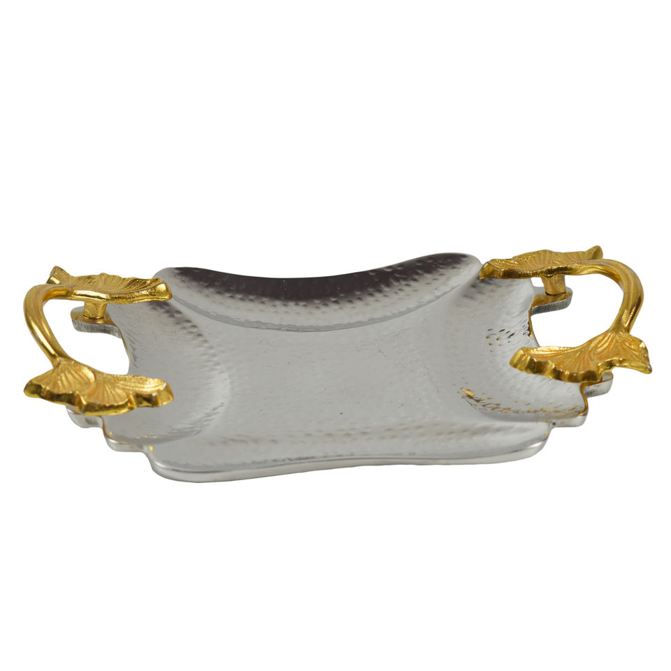 Plateau en aluminium fait main de qualité supérieure, nouveau style, nickelé avec poignée plaquée or, plateau de service pour hôtels et fêtes