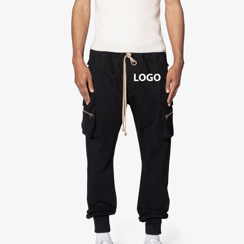 Pantalons de jogging cargo décontractés pour hommes, de premier choix, noirs, multi-poches, 100% coton, écologiques, respirants, pour la salle de sport, lavés