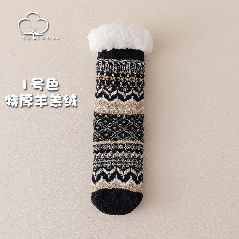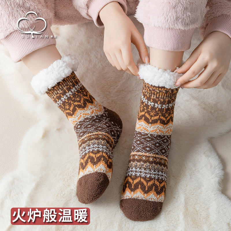 Nom du produit:Chaussettes de sol duveteuses en tricot doublé de cachemire