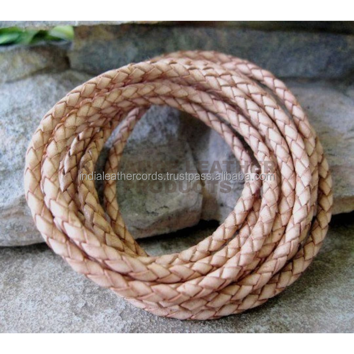 Cordon en cuir tressé de 3 mm de couleur naturelle, de qualité supérieure, pour la fabrication de bijoux, corde artisanale en cuir de vachette ronde, fournisseur professionnel
