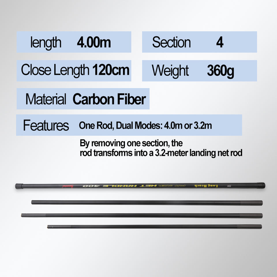 Manche de épuisette en fibre de carbone 4 sections de 4,0 m, filetage en laiton 3/8, polyvalent 3,2 m/4 m pour canaux, le mieux noté