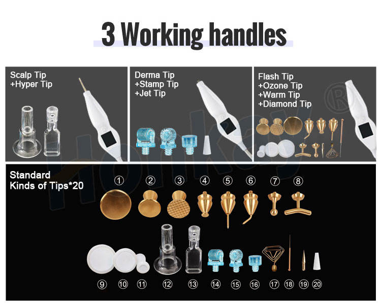 Poignées de machine de beauté plasma à ozone:Ozone blanc avec différentes fonctions