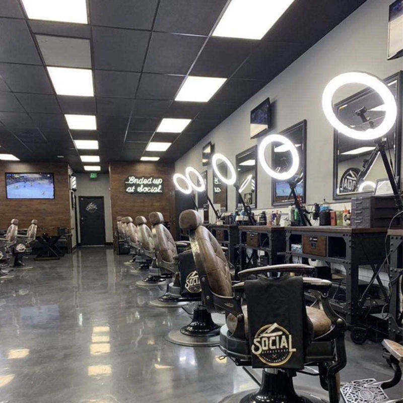 Lampe annulaire de salon la mieux notée, télécommandée, à intensité variable et température de teinte réglable, pour la coupe de cheveux, le maquillage, les prises de vue en studio et la coiffure