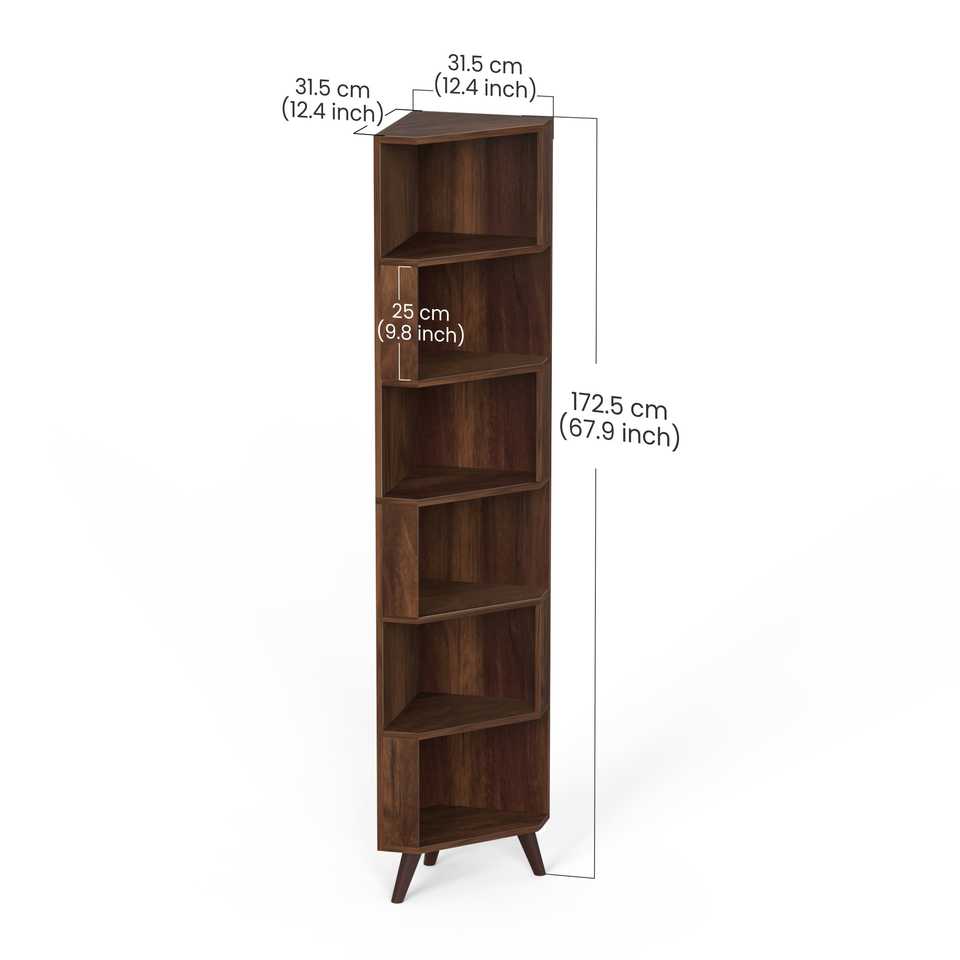 Étagère d'angle Veluno la mieux notée, bibliothèque, organisateur de livres avec étagères pour rangement, vitrine décorative sur pied