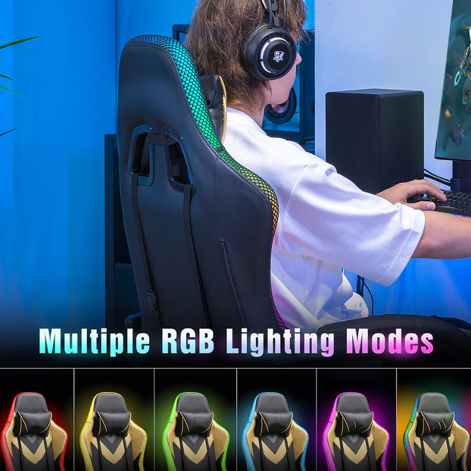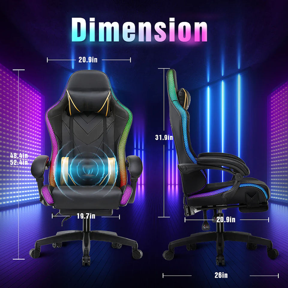 Chaise d'ordinateur éclairée par Led inclinable supérieure Racing rose chaise de massage ergonomique pour Pc Gamer chaise de jeu Gamer Rgb avec repose-pieds