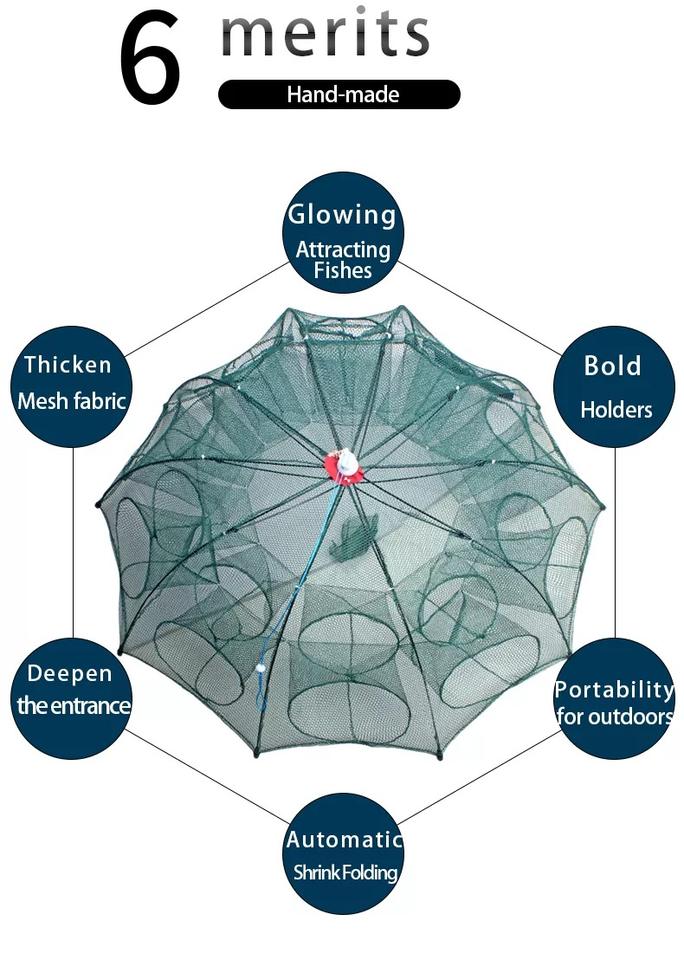 Top Right FN001 Foldable Fish Shrimp Trap Green Foldable Fishing Net Fish Shrimp Minnow Crab Trap