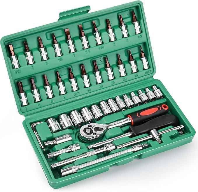 Offre Exceptionnelle : Jeu de Clés à Douille à Cliquet 46 Pièces avec Jeu de Douilles d'Embouts, Cliquet Réversible, Ensemble d'Outils pour Mécaniciens pour la Réparation Automobile-001