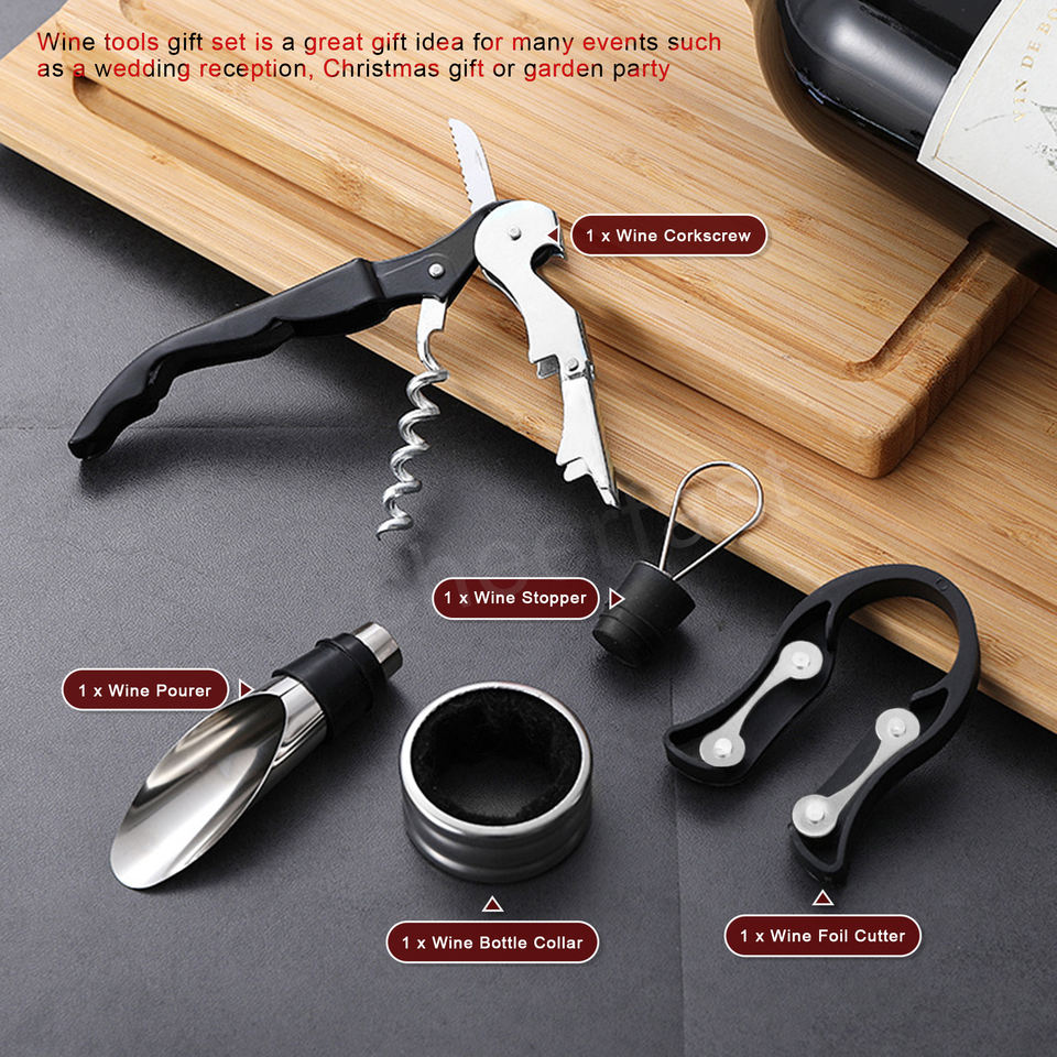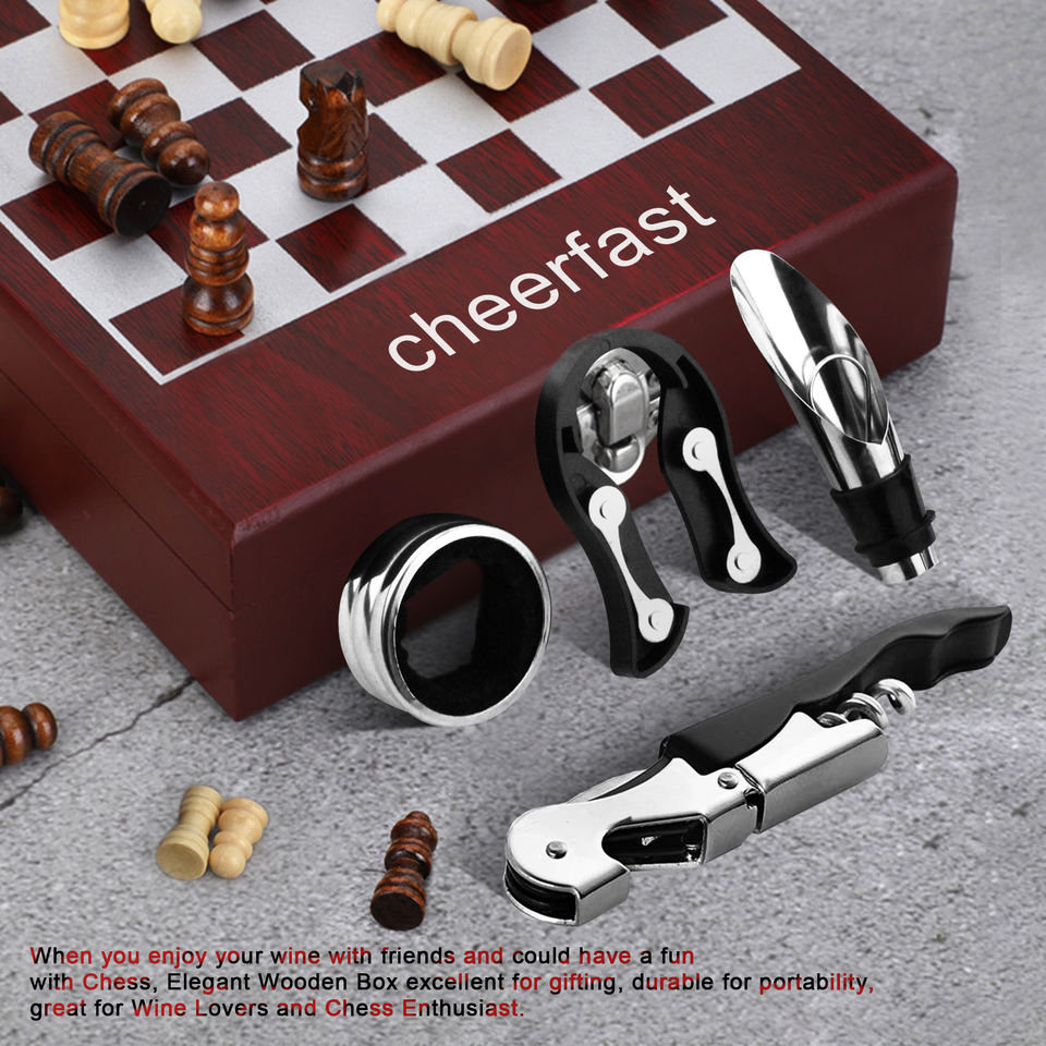 Top vente 4 pièces outils de barre accessoires de vin coffret cadeau avec Kit de tire-bouchon à vin d'échecs et ensemble d'accessoires de vin ensemble d'ouvre-bouteille