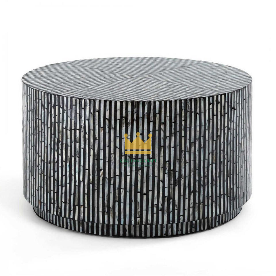 Table basse ronde de design moderne avec incrustation de coquillages, idéale pour le salon et la décoration intérieure - Meilleure vente