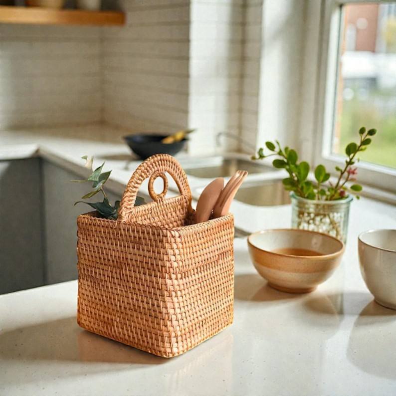 Plateau à couverts en rotin, plateau pour ustensiles de cuisine