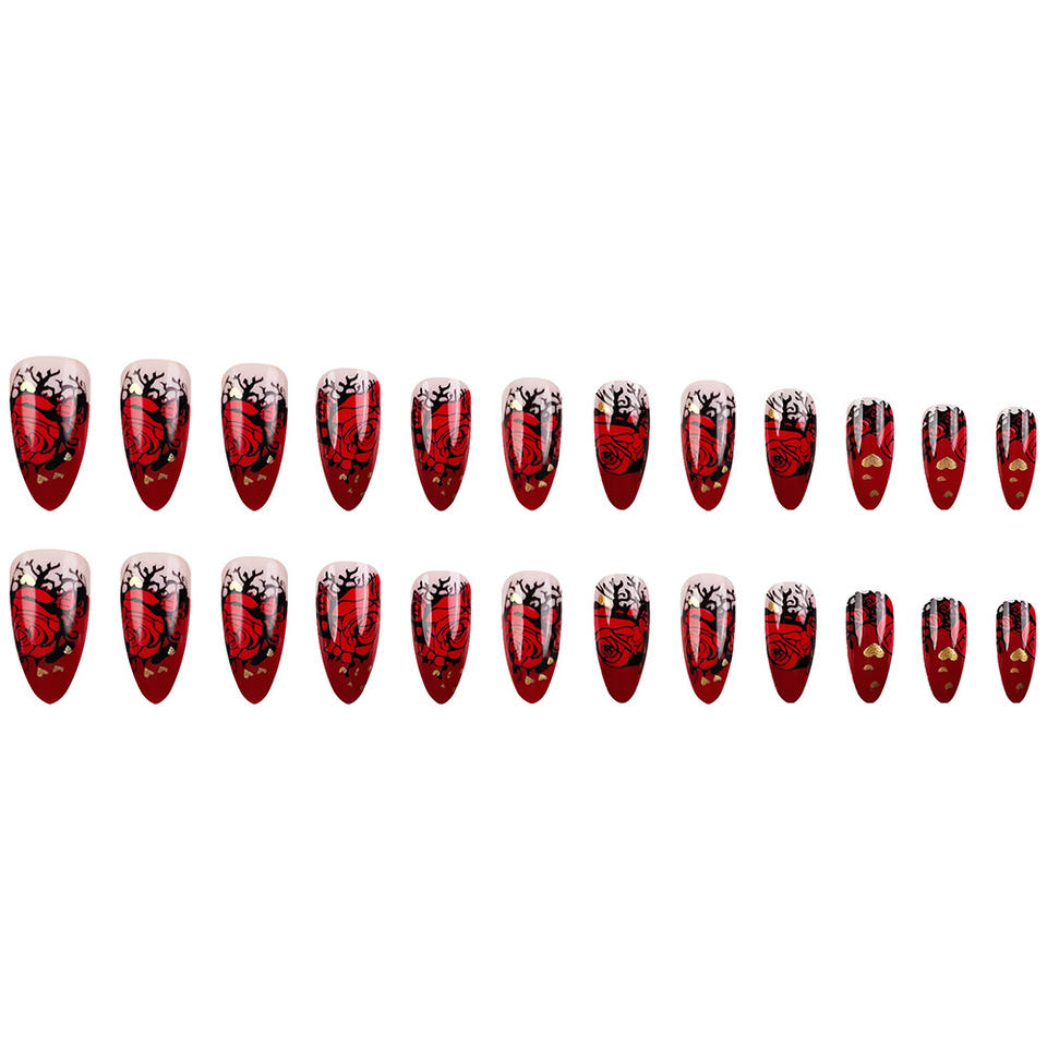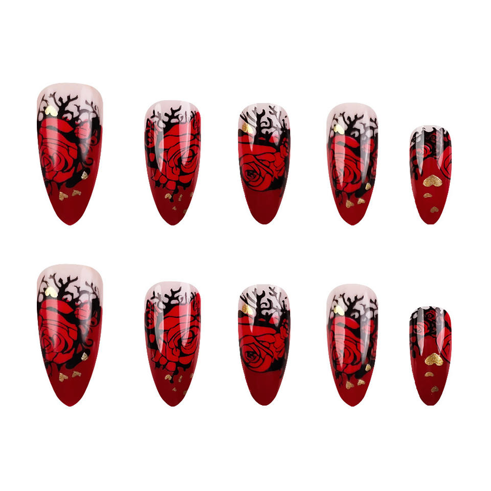 Meilleures ventes : Faux ongles réutilisables à presser, motif fleur rouge, marque privée, en stock, prix de gros usine, application sur les doigts