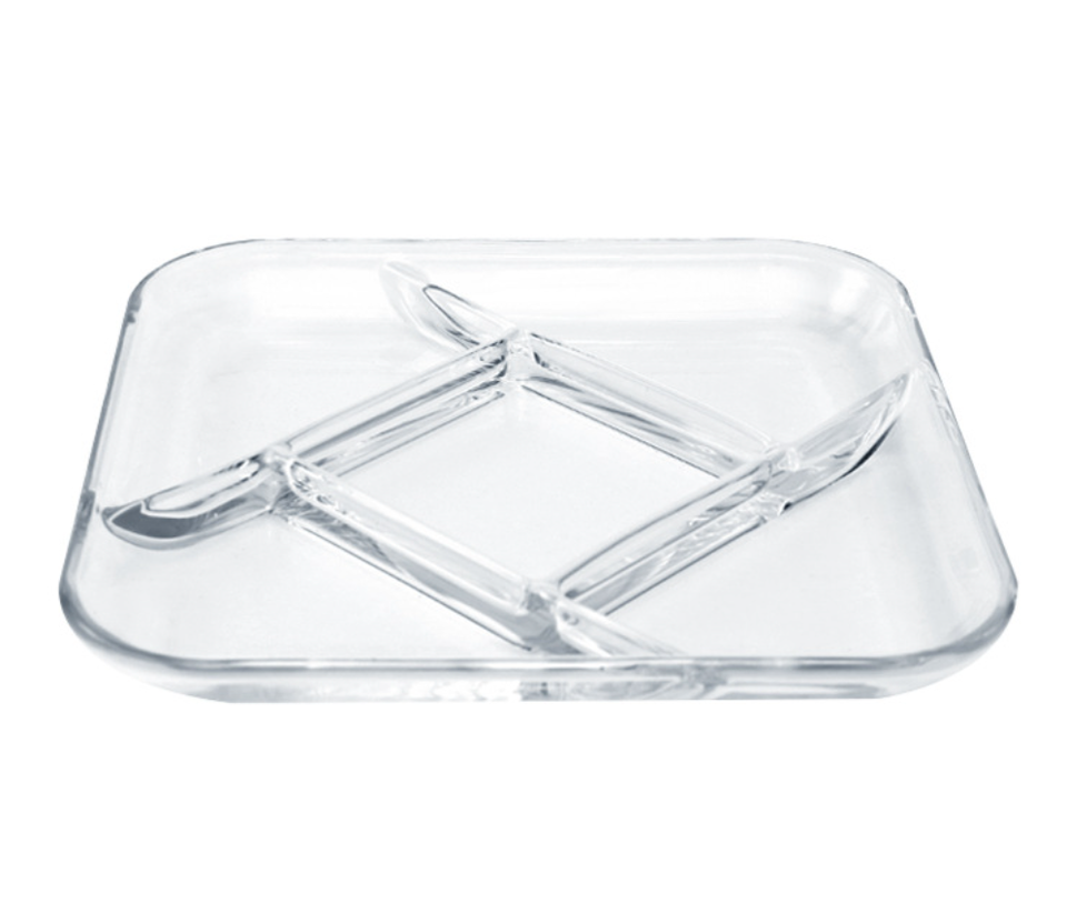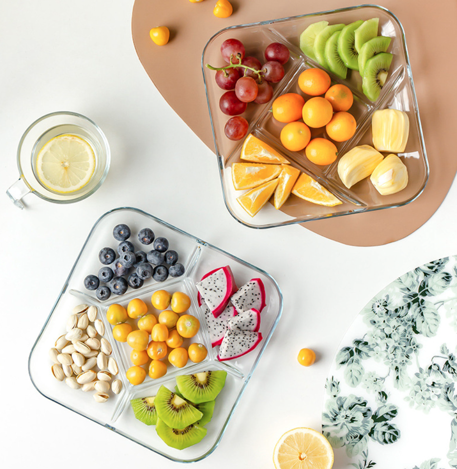 Meilleures ventes en gros Plat à salade en verre transparent divisé multi-niveaux Micro-ondes Verre trempé Plat carré