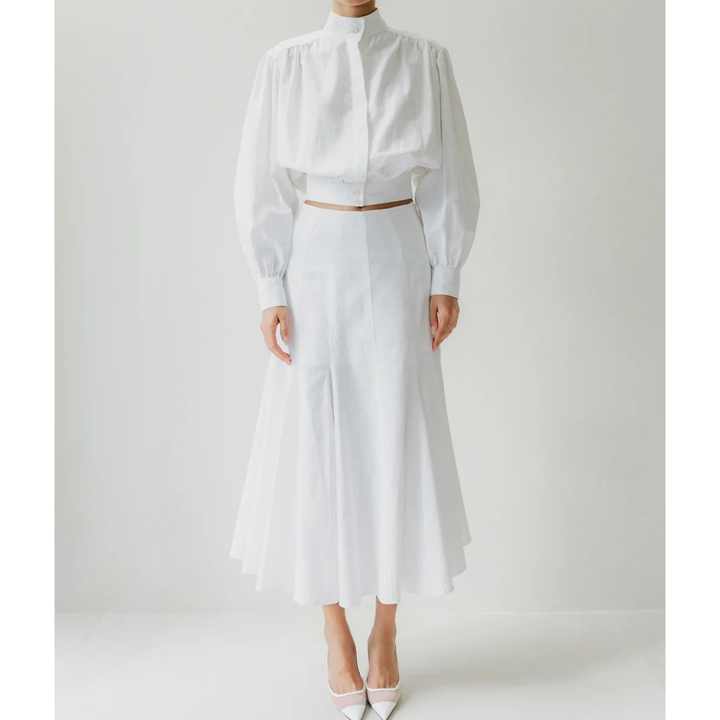Meilleures ventes : Ensemble 2 pièces pour femme, chemise en lin et coton slim, jupe longue droite