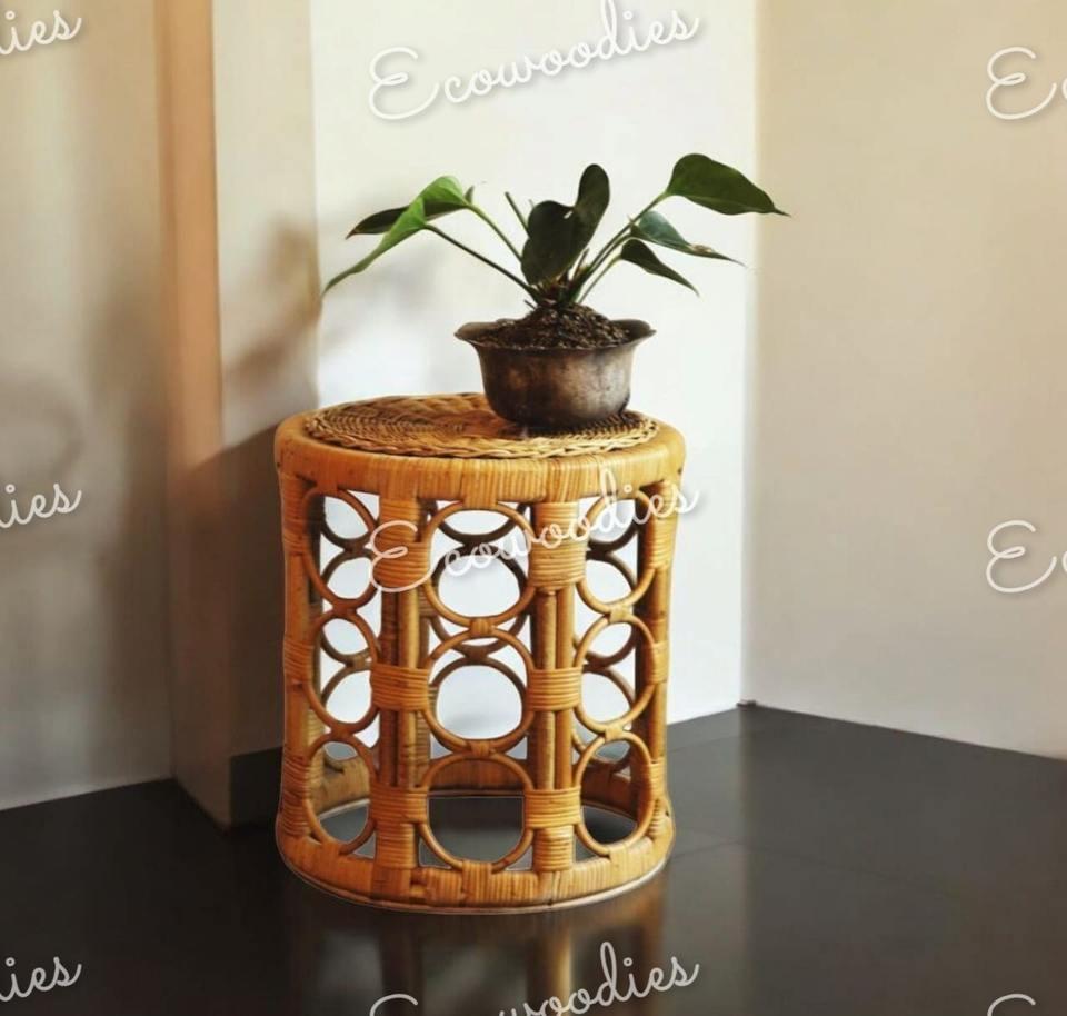 Tabouret ottoman en rotin naturel fabriqué à la main haut sélectionné Console incrustée d'os au design moderne pour une utilisation décorative intérieure et extérieure