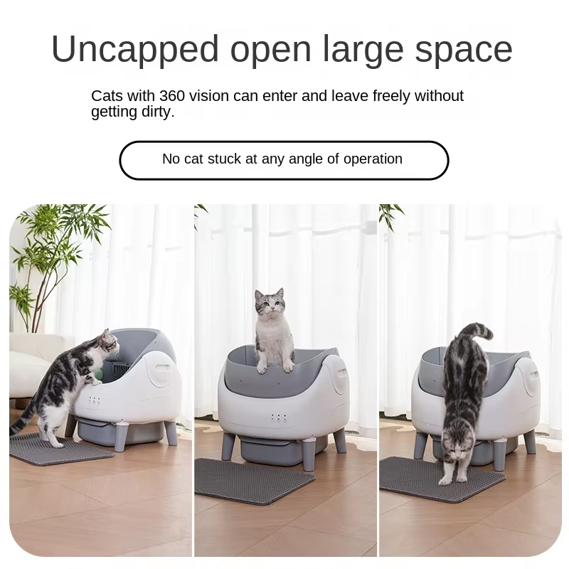 Toilette pour animaux de compagnie haut de gamme, autonettoyante, entièrement automatique, à entrée par le haut, anti-éclaboussures, désodorisante, avec contrôle intelligent par application, bac à litière pour chat