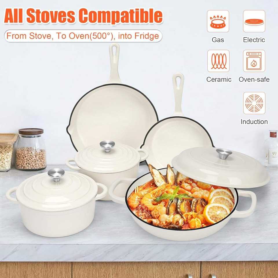 Ensemble de 11 pièces de batterie de cuisine en fonte émaillée