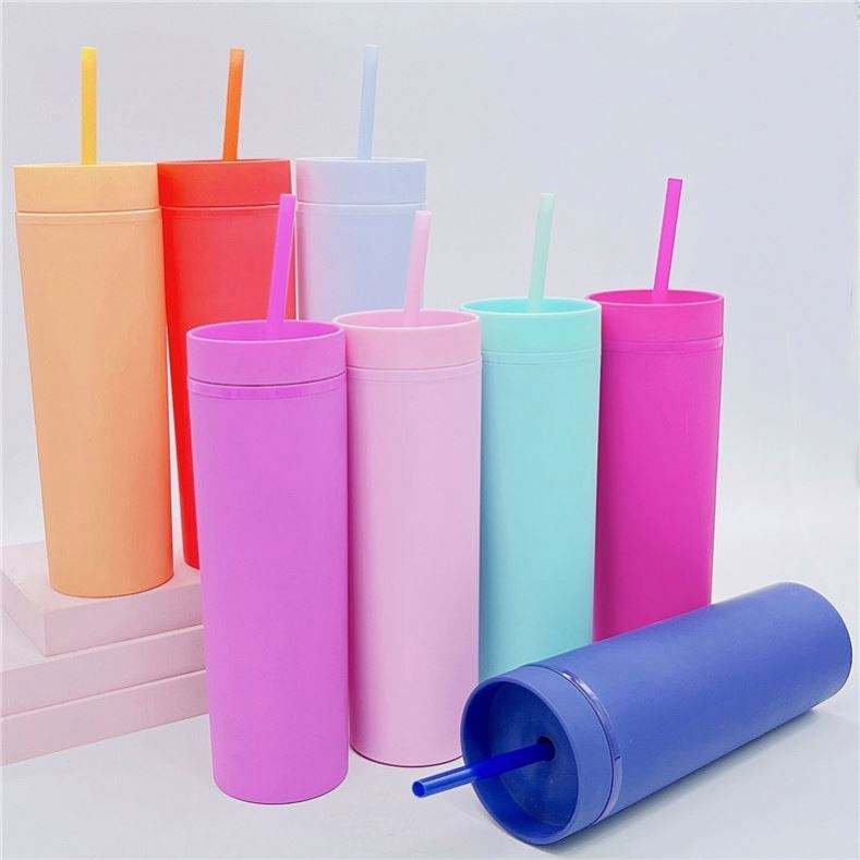 Top Seller 500M/16Oz BPA-Free Plastic Double Wall Tumbler Cups Modern Design Juice Coffee Straw Cup Skinny Tumbler Mugs Water