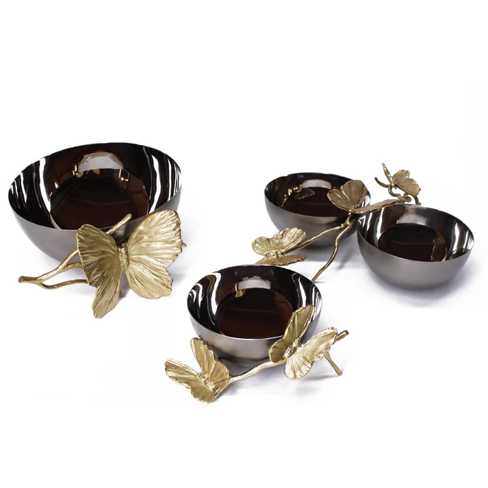Top Seller Gold And Silver Steel Serving Bowls For Nuts with Gold Flowers Salad Bowls Fruit Bowls for Home Decoration