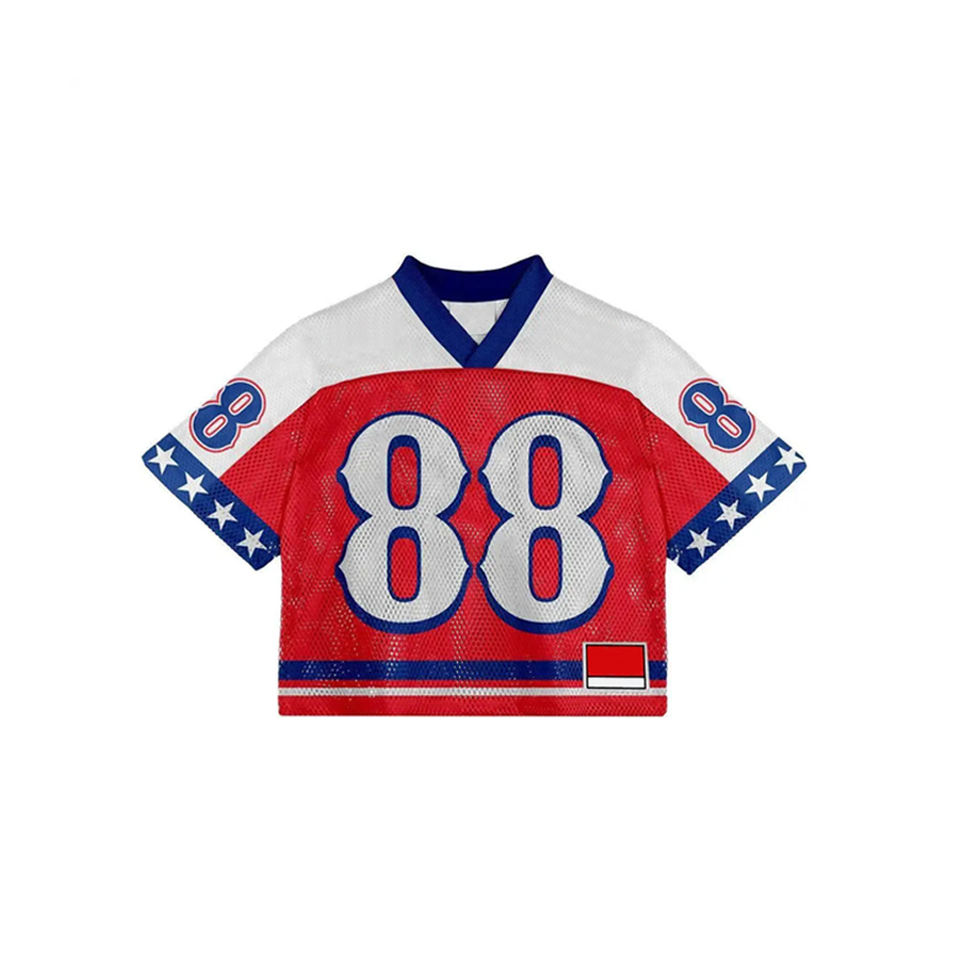 Maillot de football américain respirant en maille rétro à manches courtes, style tendance, confortable à porter, best-seller