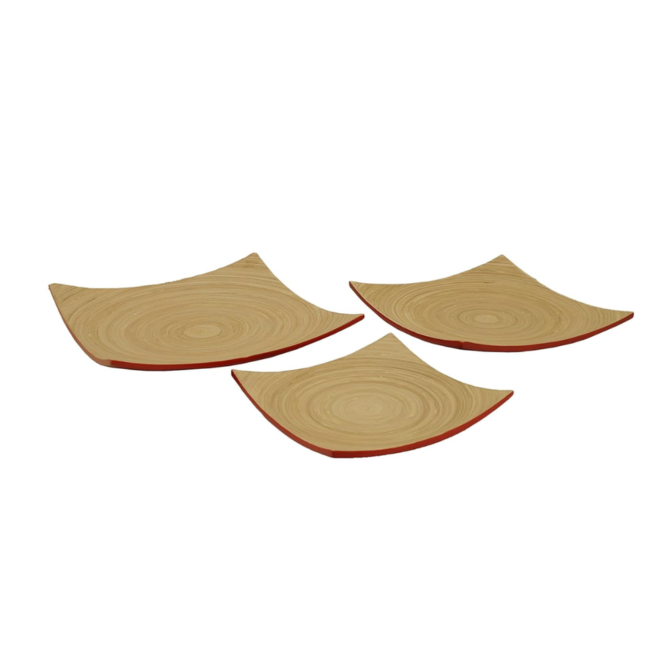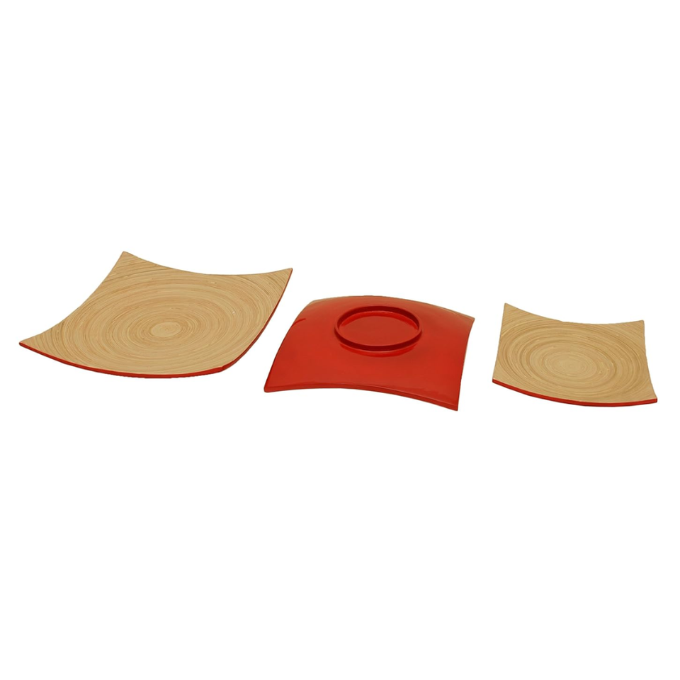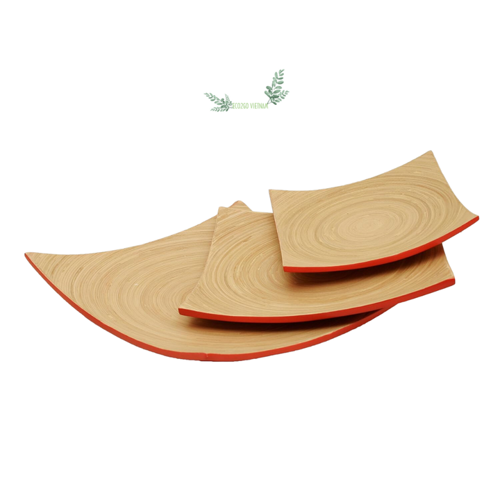 Assiettes gigognes en bambou filé, best-seller et très tendance, avec un ensemble de 3 pièces écologiques rouges, en provenance du Vietnam