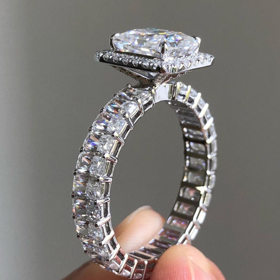 Top vente 1.75 Ct Radiant Cut Moissanite bague de fiançailles de mariage 14K or jaune bagues fines en gros éternité Vermeil