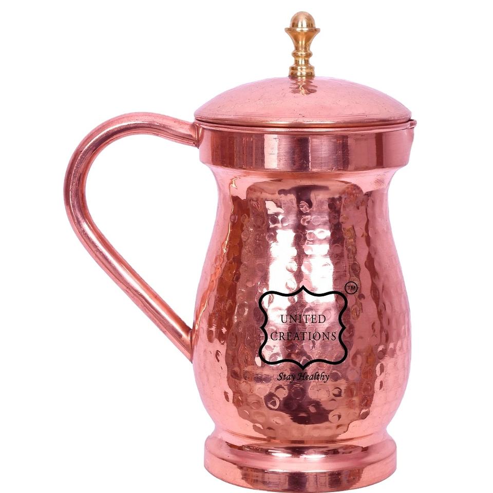 Pichet en cuivre pur 100% le plus vendu Pichet à eau martelé minimaliste Capacité de 1000ml Écologique Unisexe pour boire directement