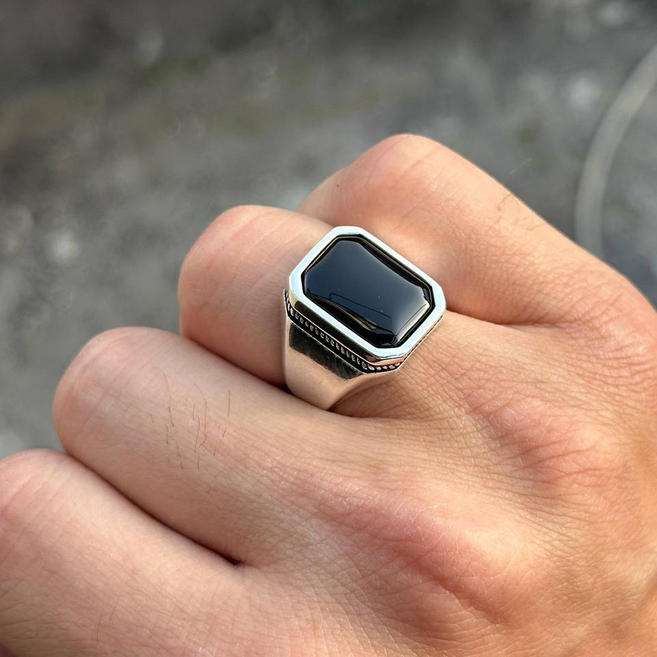 Product Name:12x16mm Black Onyx Octa Cushion Masculine Gemstone Signet Ring