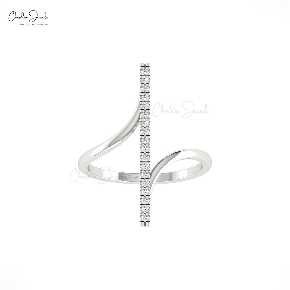Bague Statement en Or Massif 14K, Modèle Barre, Sertie de Diamants G-H 0.14CTW en Pavé, Bijoux de Mariage Haut de Gamme, Vente Flash, Directement du Fournisseur