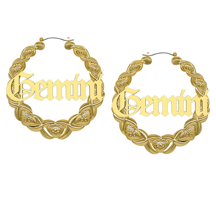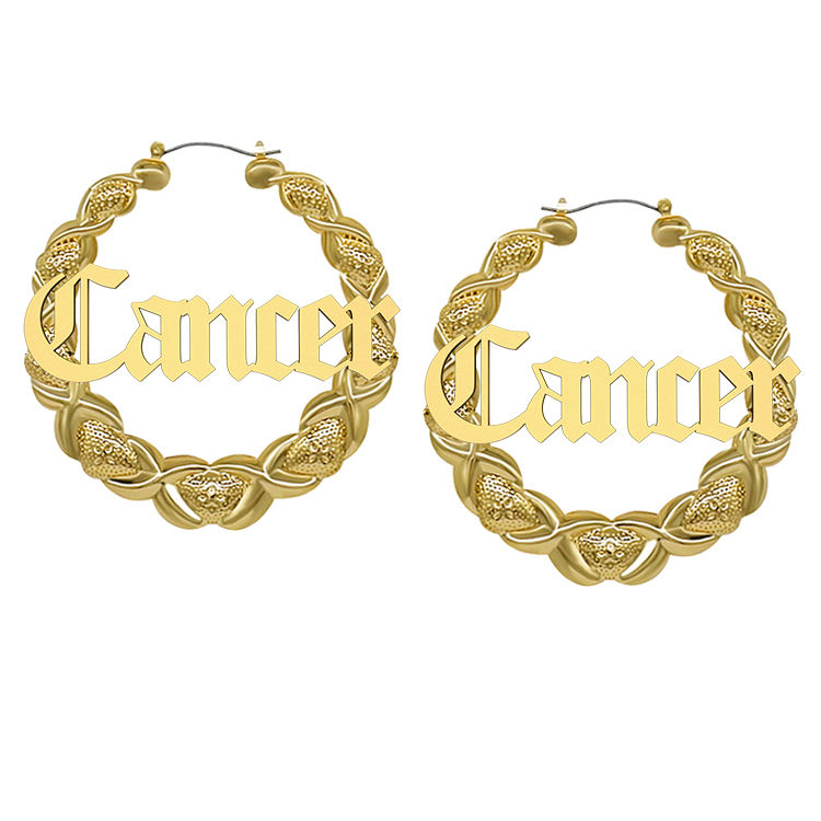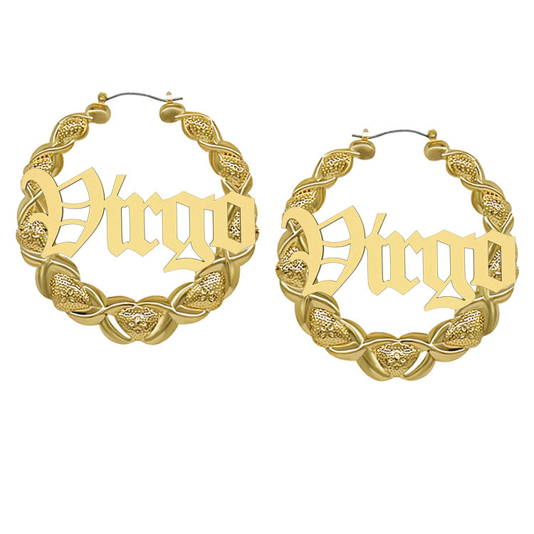 Top Selling 14k Gold Plated Personalized Custom Zodiac Name Horoscope Xoxo Bamboo Large Size Hoop Earrings for Women