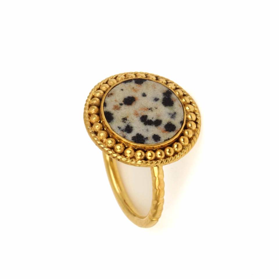 Product Name:Natural Dalmatian Jasper Sterling Silver Gold Plated Ring