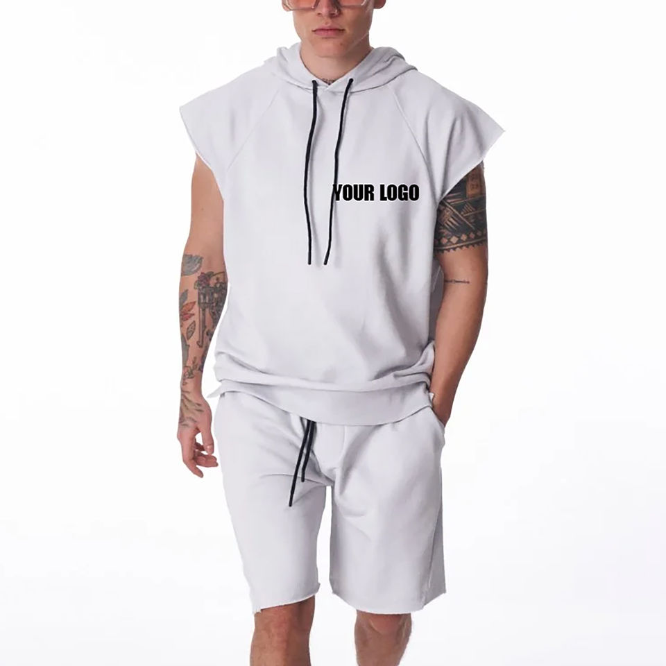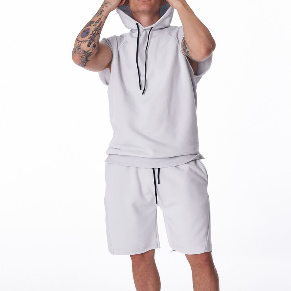 Ensemble 2 pièces le plus vendu – Coupe classique, manches courtes, sweat à capuche imprimé et short – Décontracté, sportif, tissu haut de gamme, poids moyen, respirant