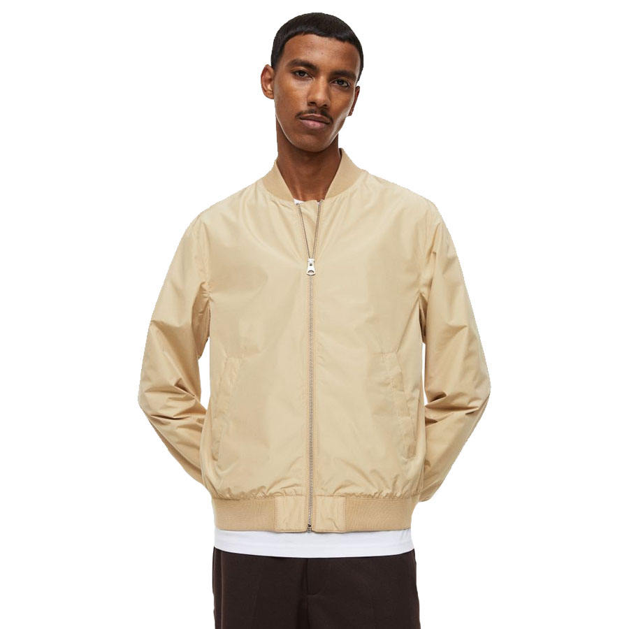 Blouson Bomber Homme Beige Imperméable en Polyester/Coton avec Fermeture Éclair et Poches Avant – Meilleures Ventes 2023