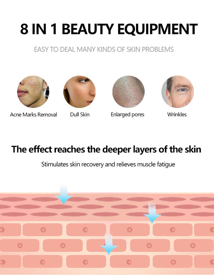 Système de soins de la peau multifonctionnel 8-en-1 le plus vendu Puissance 500W pour le traitement de l'acné et la revitalisation de la zone des yeux