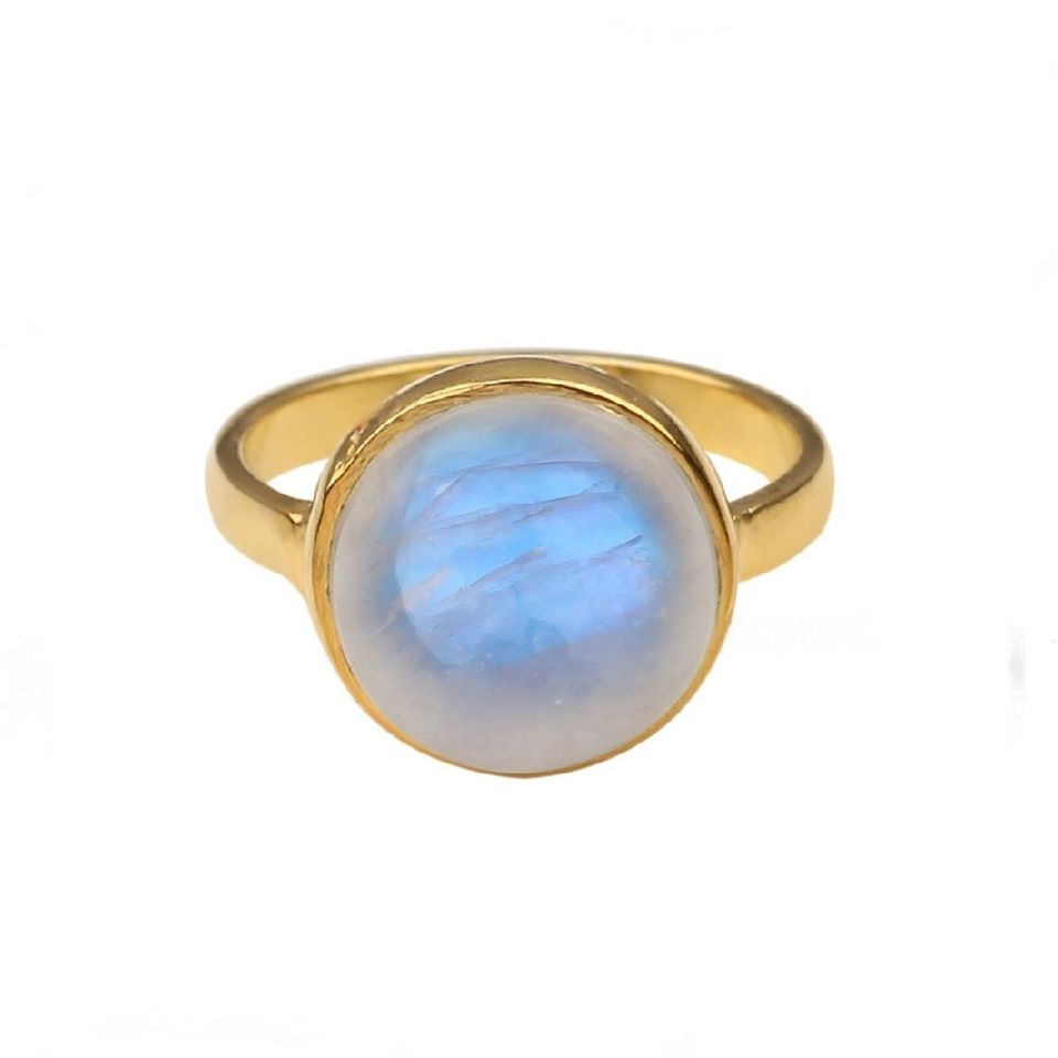 Nom du produit:Bague en Argent Sterling 925 Plaqué Or avec Pierre de Lune Arc-en-Ciel Naturelle