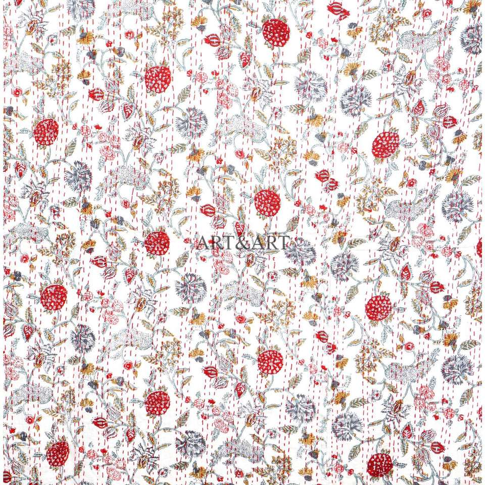 Couvre-lit Kantha fait main ART&ART, best-seller, 100% coton, imprimé à la main, motif floral, poids du tissu 220g, pour femmes