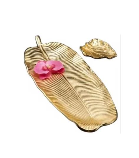 Plateau de feuille en aluminium le plus vendu avec plaqué or au prix de gros plateau de service de fruits de taille personnalisée pour le dîner