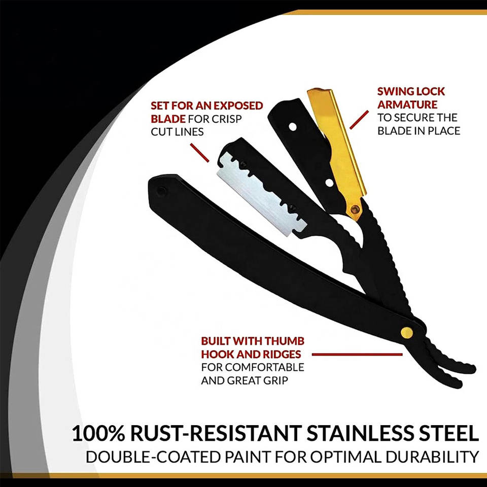 Nom du produit:Rasoir de bord de coiffeur pliant le couteau de rasage se pliant droit de rasoir