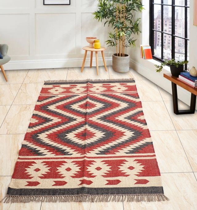 Top vente Boho Style Kilim tapis concepteur fait à la main laine Jute turc motif géométrique tapis polyvalent pour la maison bureau plage
