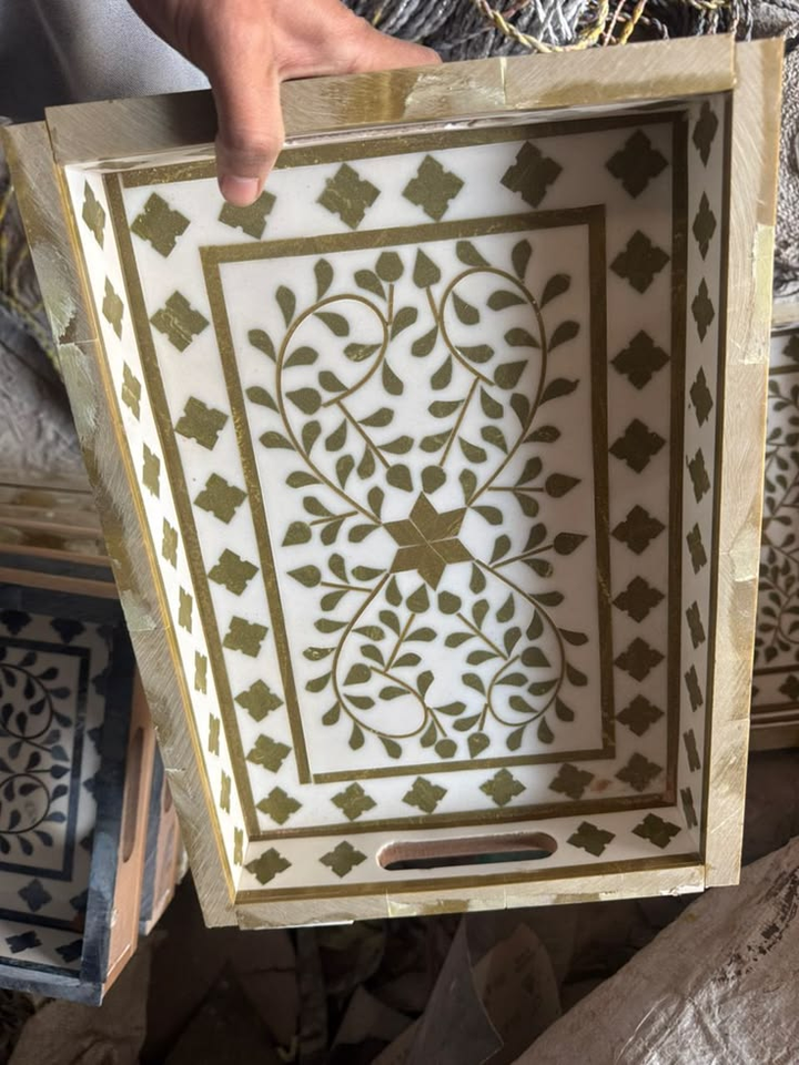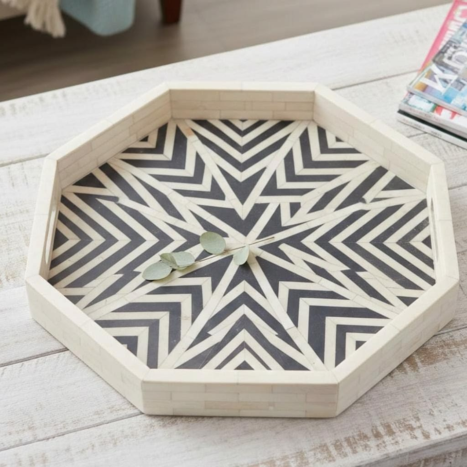 Plateau de service de mariage fait main en os incrusté, design personnalisé, le plus vendu, vaisselle durable et compatible lave-vaisselle, provenant d'Inde
