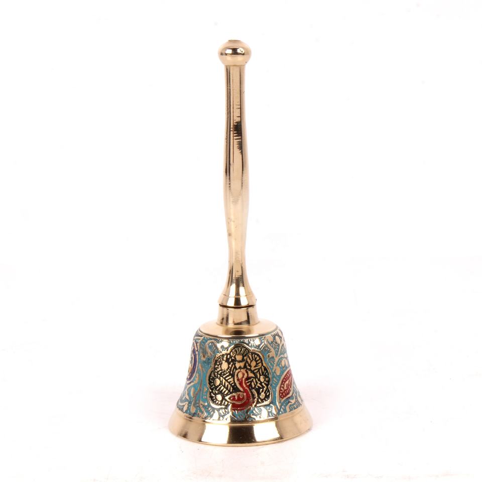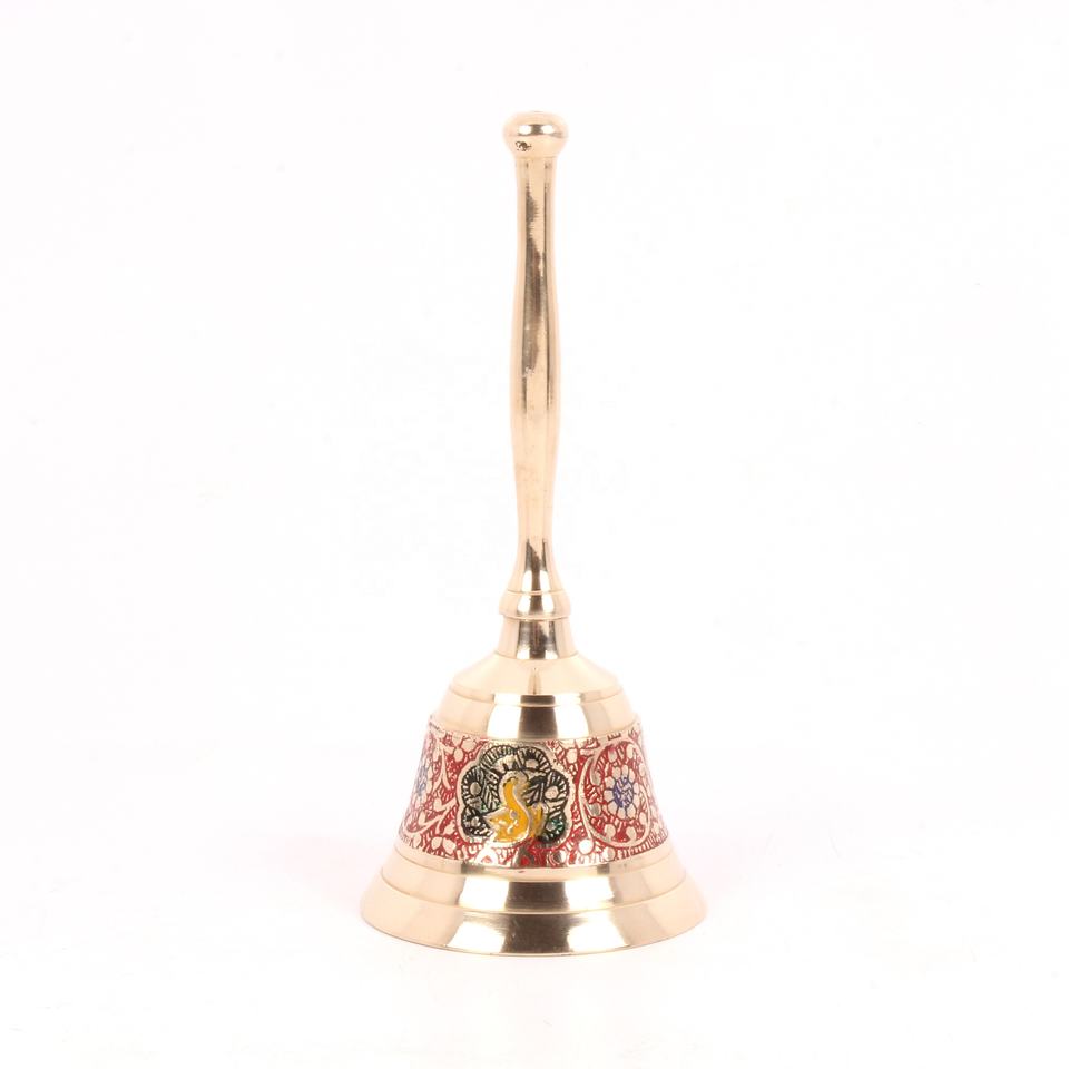 Top vente en laiton gravé main cloche plaine poli blanc couleur pour la maison accessoires décoratifs main cloche dîner appel cloche