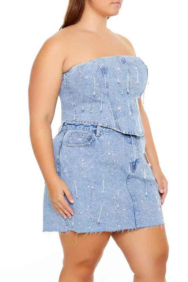 Top en jean pour femmes grande taille, respirant, écologique, à prix abordable, design personnalisé, orné de strass, parmi les plus vendus