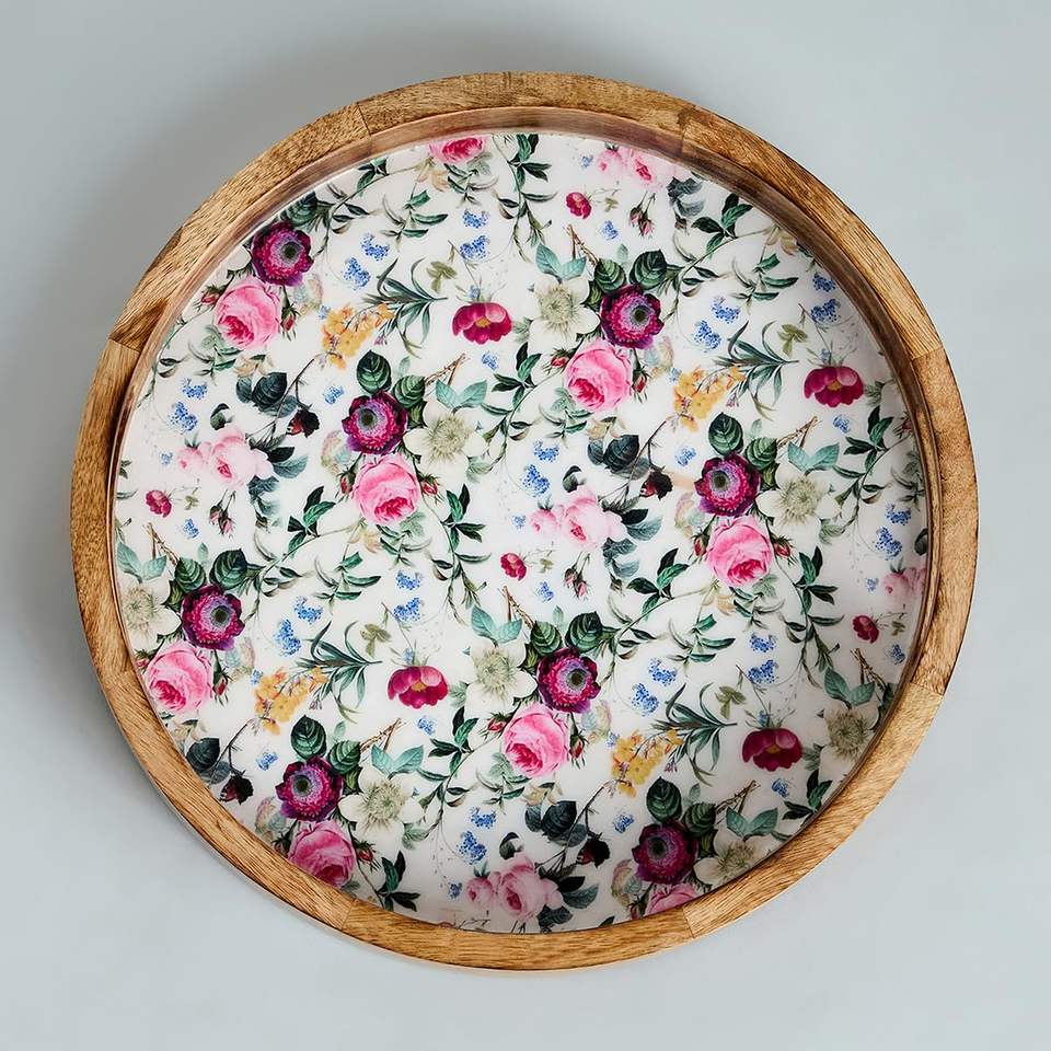 Plateaux de service ronds en bois de conception classique, très vendus, qualité supérieure, longue durée de vie, brillants, décoratifs
