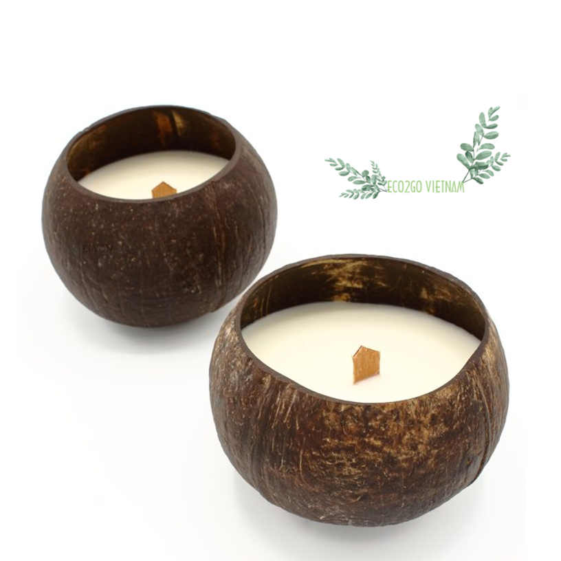 Bol de bougie en coque de noix de coco pour bougie, avec Logo Laser gravé fabriqué au Vietnam, eco 2go,