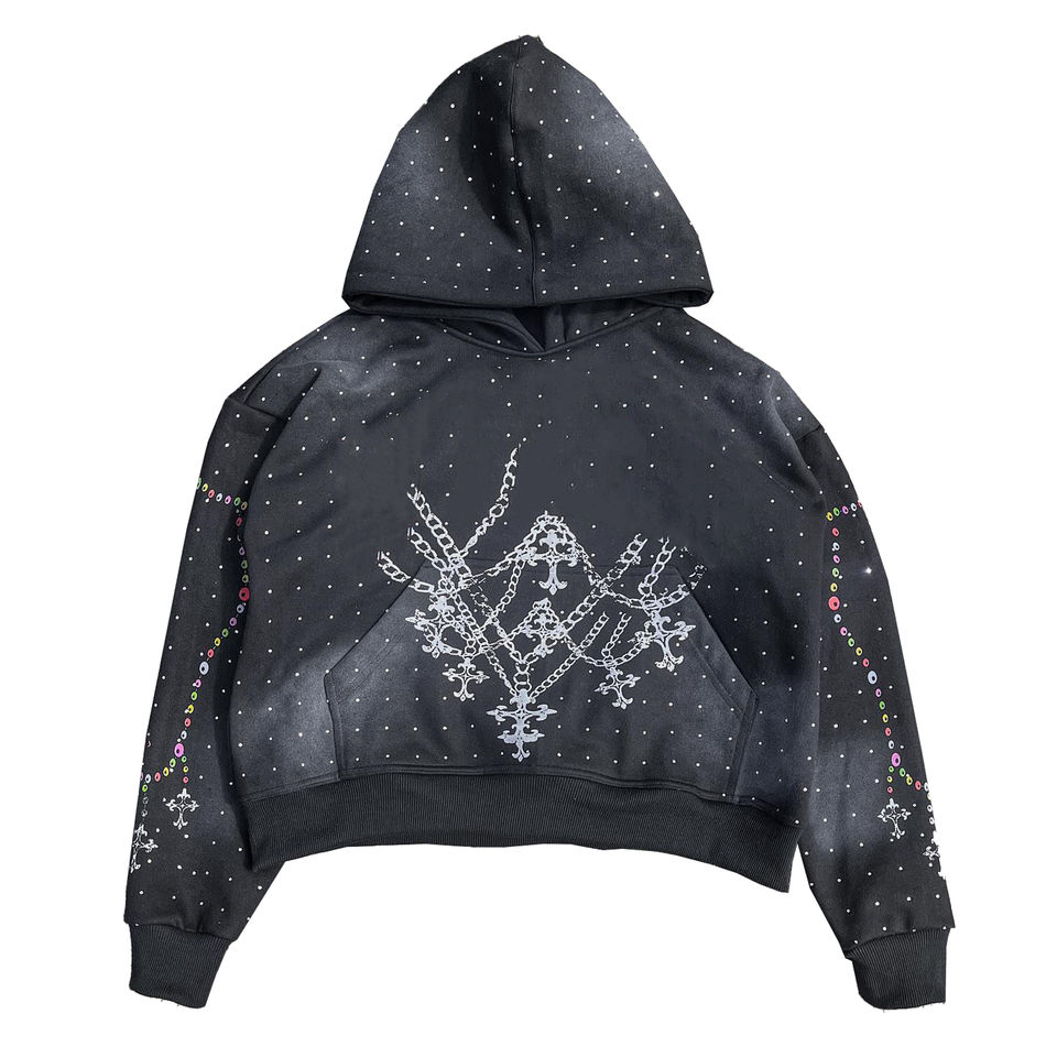 Top vente hommes Polyester/coton personnalisé brodé pour français éponge surdimensionné lavage à l'acide sweats à capuche strass hiver