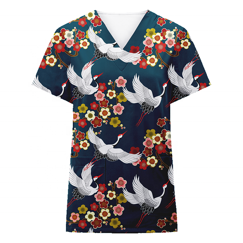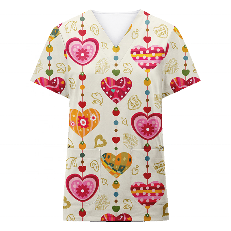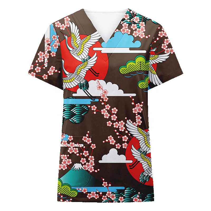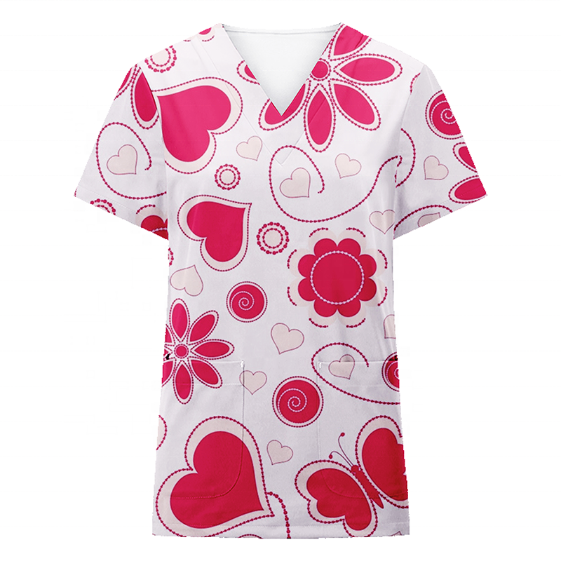 Uniforme de gommage médical personnalisé, impression numérique, col en v, manches courtes, sexy, meilleure vente