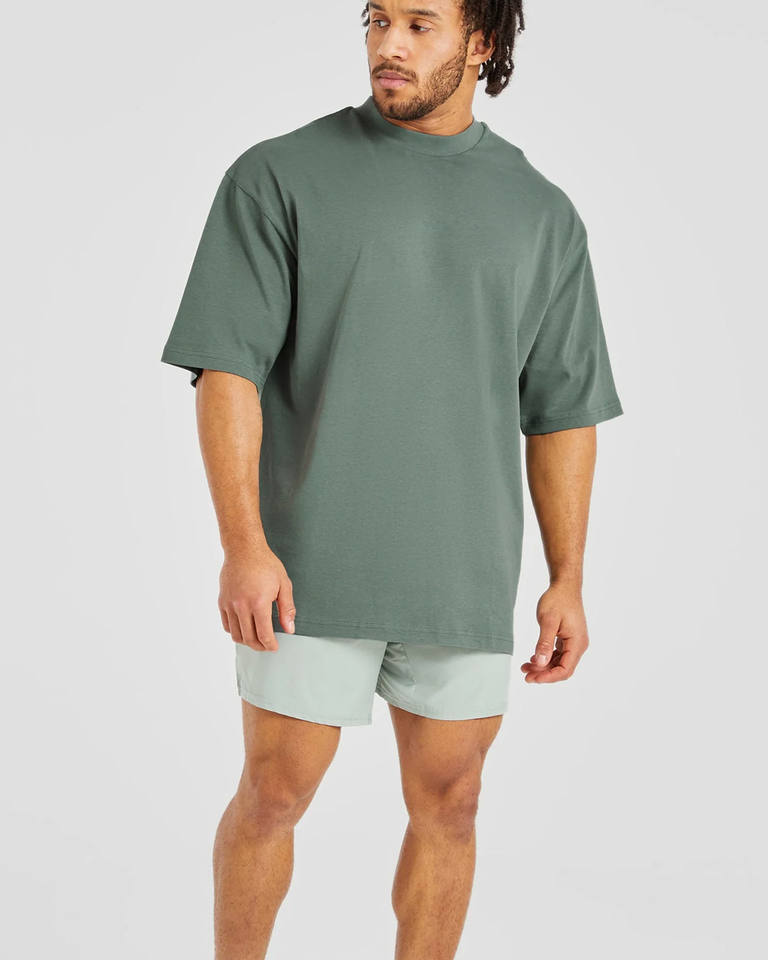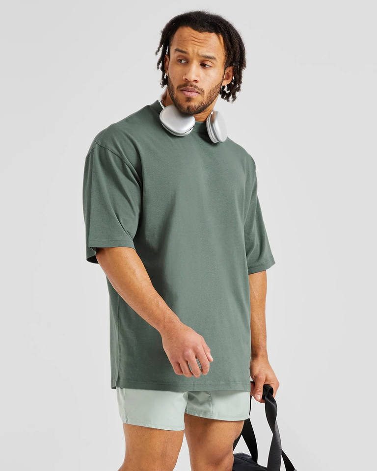 T-shirt homme surdimensionné à épaules tombantes, personnalisé avec logo, en coton mélangé respirant, idéal pour la gym et le streetwear.