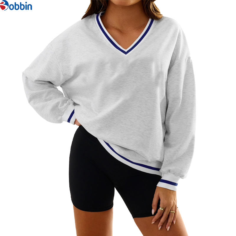 Sweat-shirt à col en V imprimé et brodé avec logo personnalisé, pour femme, décontracté, à manches longues, coupe ample, streetwear, parmi les plus vendus