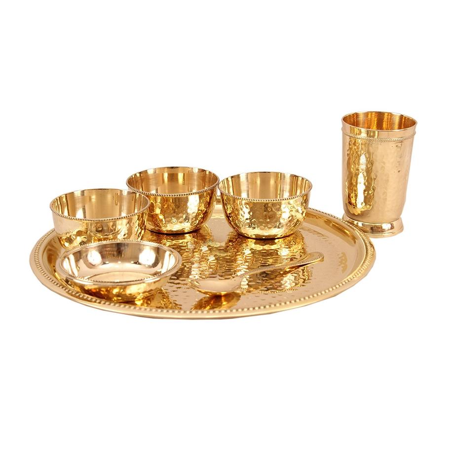 Vaisselle la plus vendue ensemble de dîner traditionnel en laiton ensemble de Thali de dîner de forme ronde pour l'usage d'hôtel.