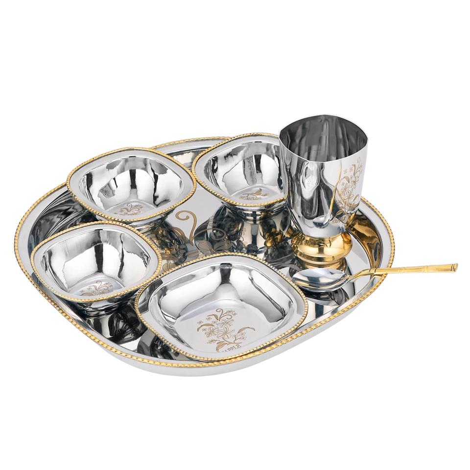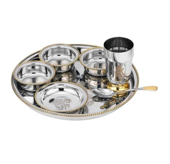 Vaisselle la plus vendue Plateau de service alimentaire Forme ronde en acier inoxydable Thali Assiette à dîner Dîner Thali Set pour l'hôtel.